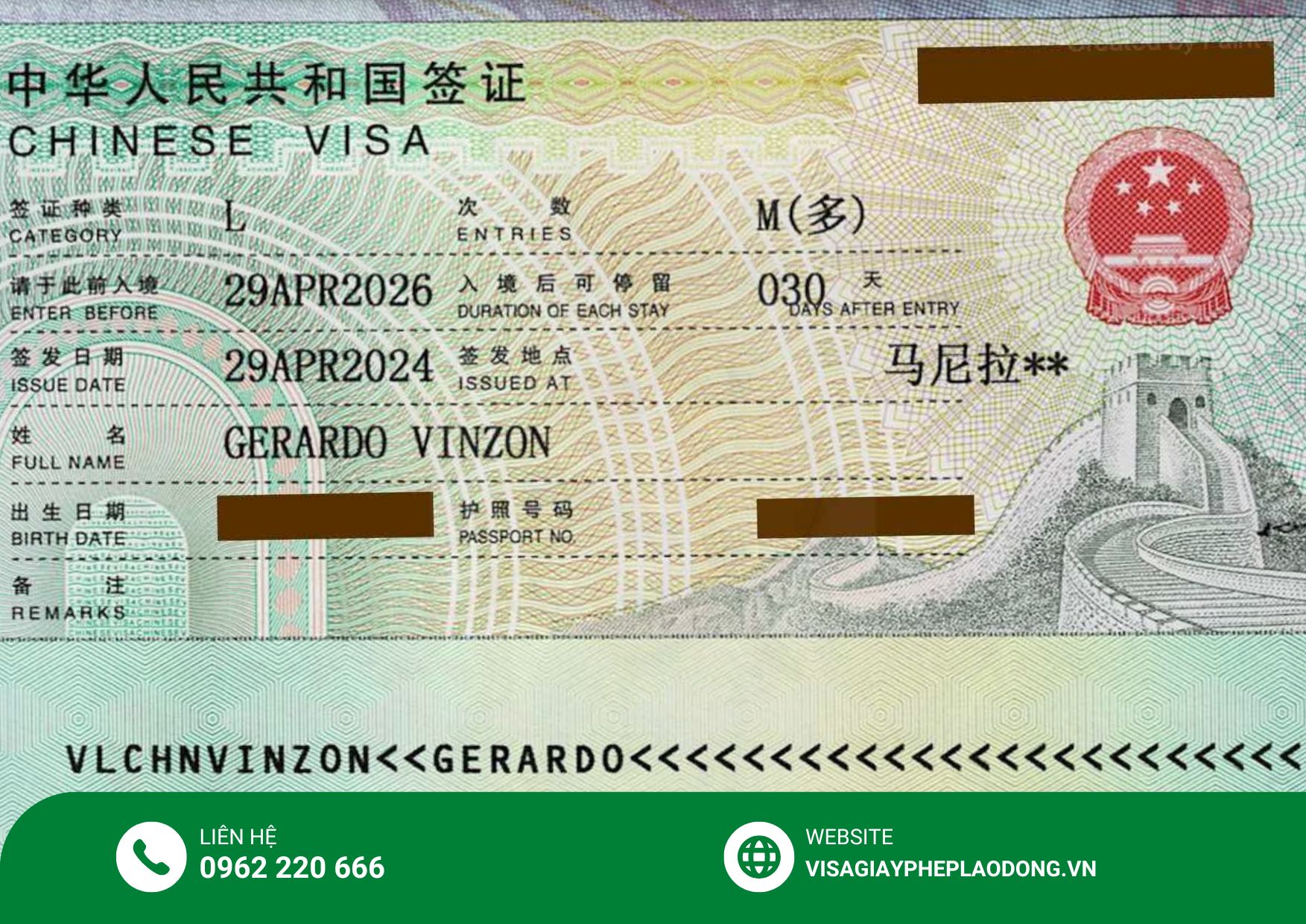| Visa du lịch | L | Người đến Trung Quốc du lịch |