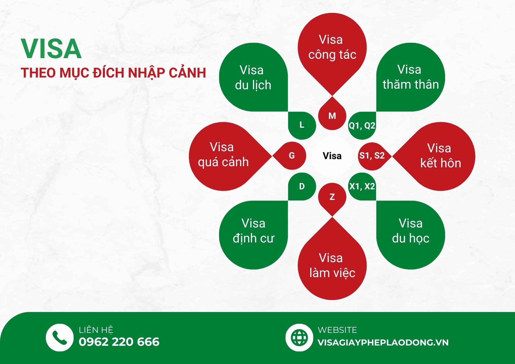 | VISA DU LỊCH (L) | VISA CÔNG TÁC/ THƯƠNG MẠI (M) | VISA THĂM THÂN (Q1,Q2) | VISA KẾT HÔN (S1- S2) | VISA DU HỌC (X1, X2) |